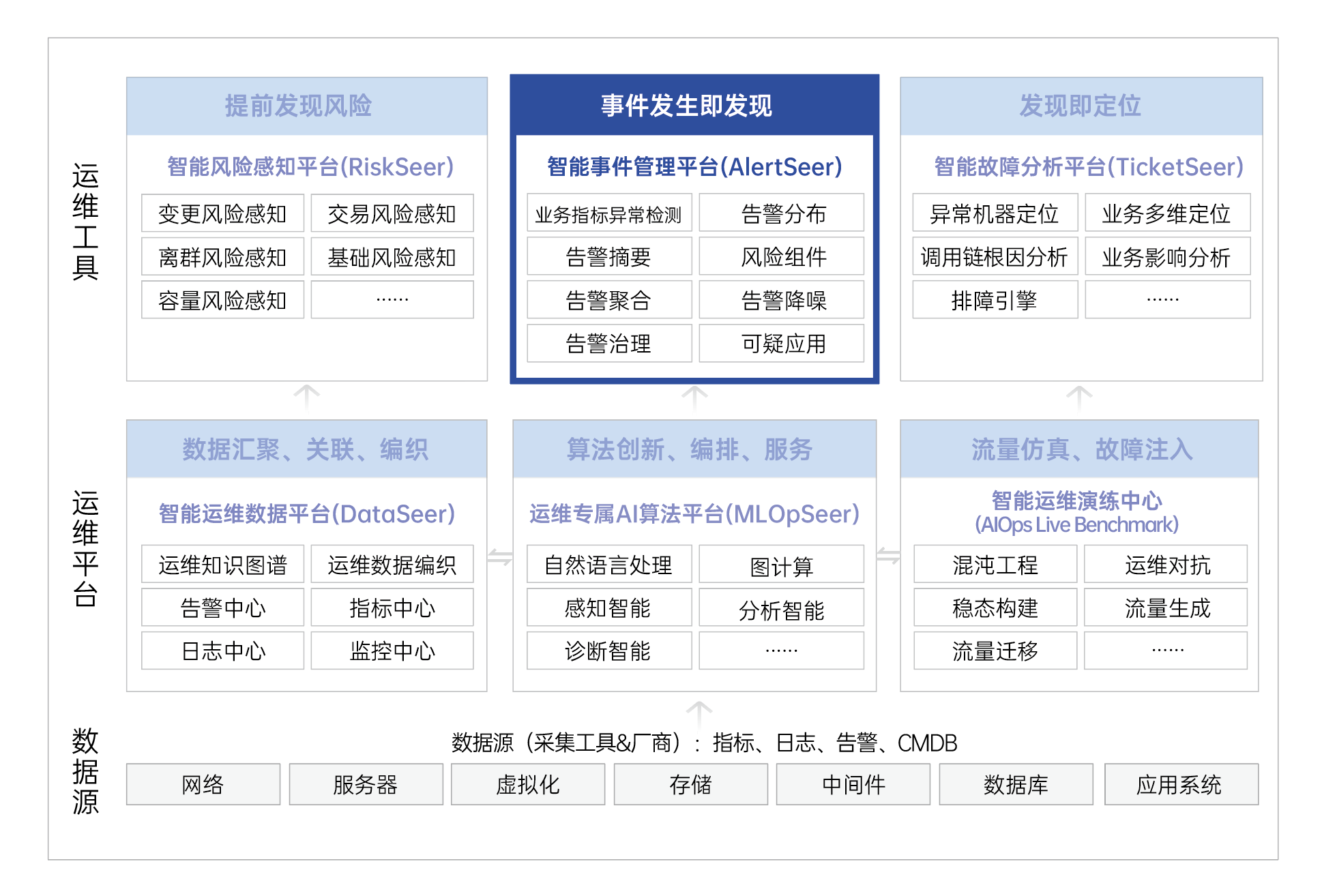 必示智能事件管理平台(AlertSeer)是必示智能运维产品矩阵中,实现“事件发生即发现”功能的智能运维产品,在实现告警全生命周期集中管控的基础上,结合先进的告警分析算法,实现“关键告警一屏清”、“故障排查有方向”、“告警治理有保障”等运维目标。