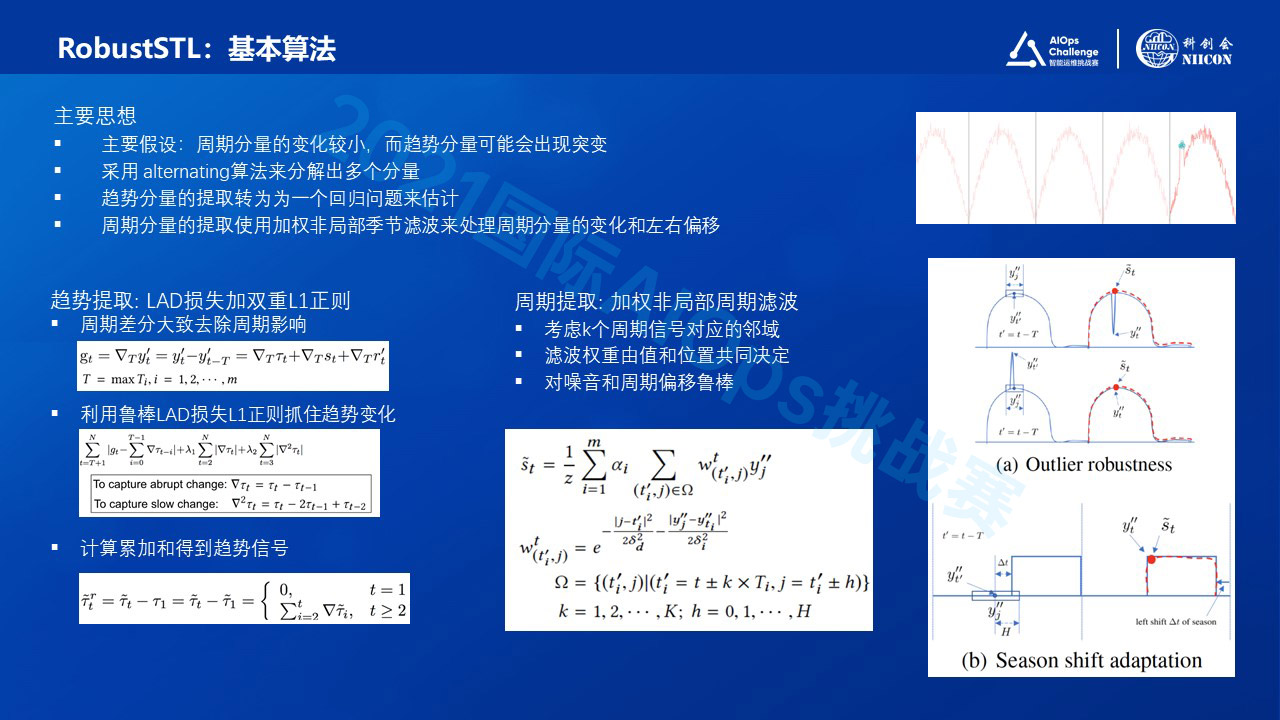 所以我们提出了 RobustSTL鲁棒周期-趋势分解算法,应对这些挑战,其实有一个基础的STL算法以及它的一系列变体。