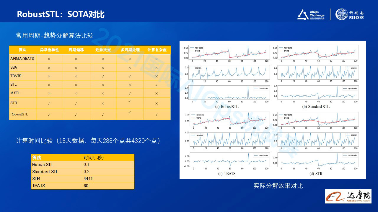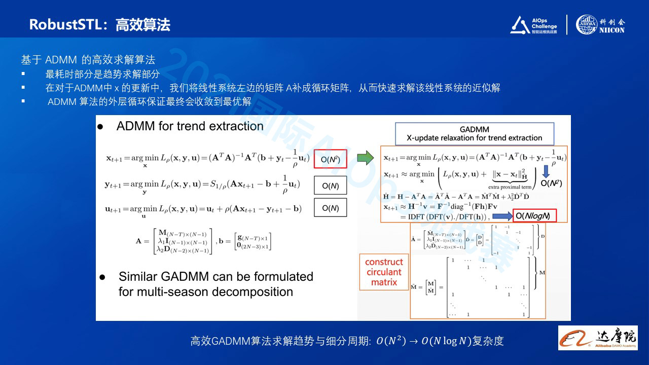 另外一个就是高效的算法。为了满足阿里巴巴内部海量数据,实时计算的需求,我们特别开发了针对RobustSTL的高效求解算法 (GADMM 通用化ADMM算法)。