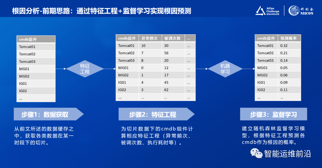 - 通过监督学习模型(随机森林)为每个cmdb组件计算概率。